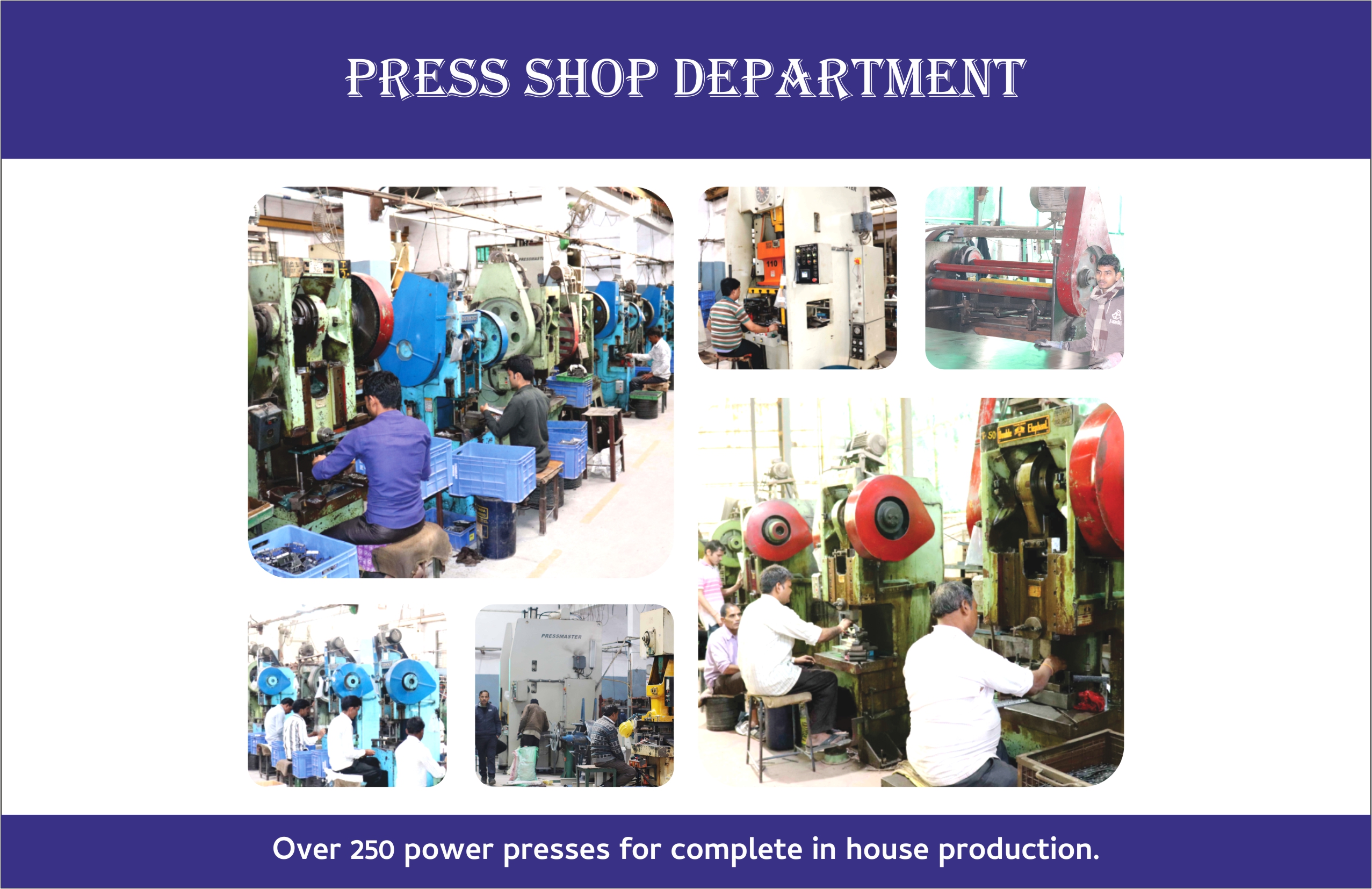 - - Over 250 power presses for complete in house production.