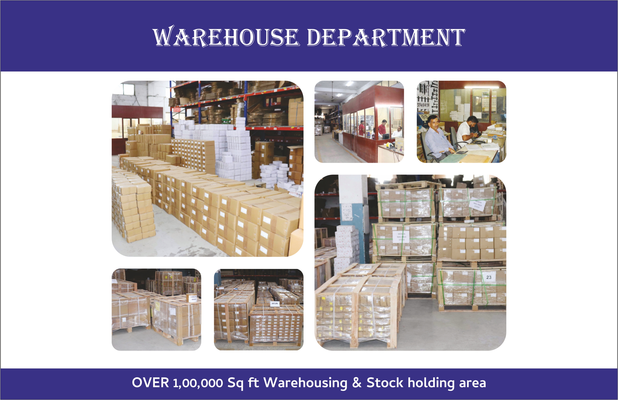 - - In-house facility over 100,000 Sq. ft. Warehousing & Stock holding.